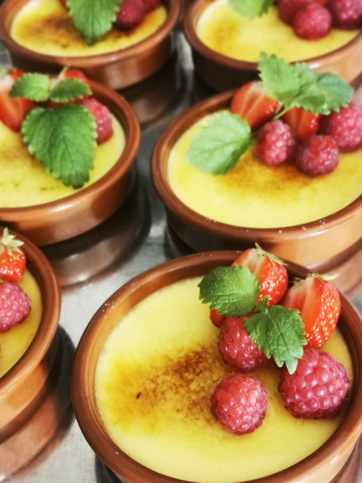 Creme brulé med friske bær. (egg,melk)